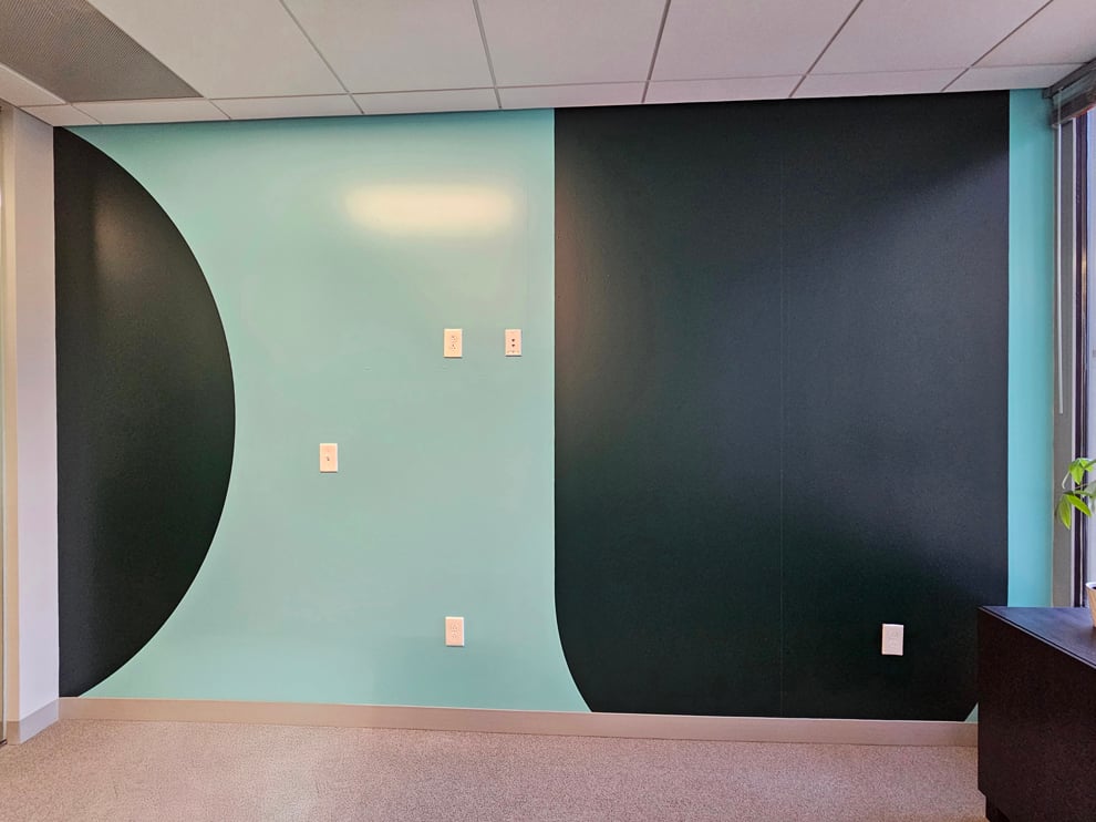 The brief called for a full interior refresh aligned to a new brand rollout, including removal of existing graphics, a stronger lobby statement, color continuity across primary walls, and improved privacy on glass without compromising the office’s natural light.